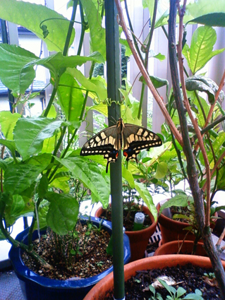 奇麗なキアゲハが誕生している。羽を乾かしていた!